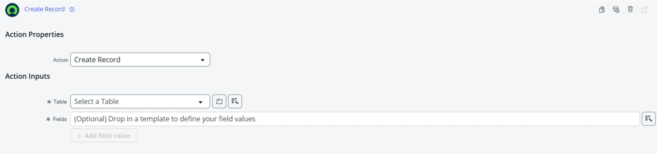 - 新しいレコードを作成するアクション「Create Record」を追加。