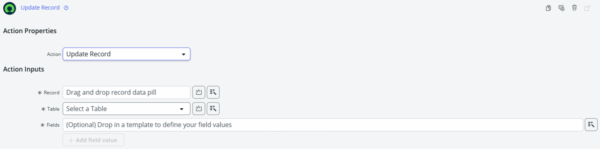 - レコードを更新するアクション「Update Record」を追加。
