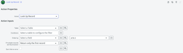 - 事前に作成しておいた更新用レコードを検索するアクション「Look Up Record」を追加。