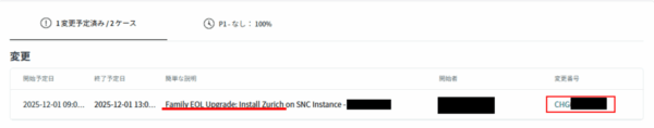 予定されている変更一覧から、メジャーバージョンアップに関するものの変更番号をクリックすることで開きます。