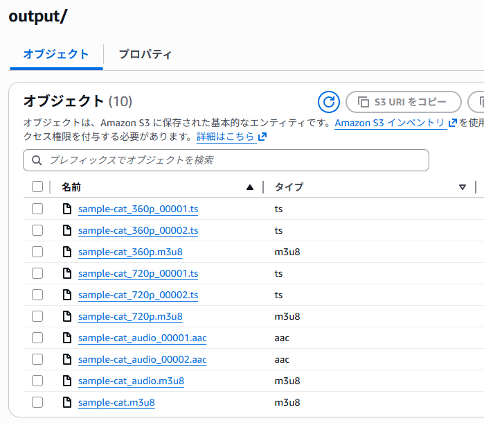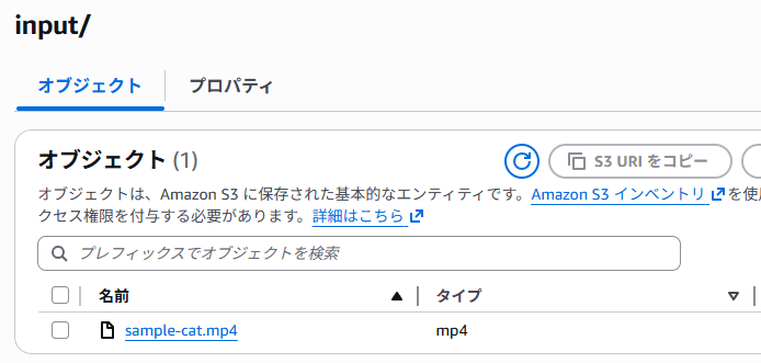以下のように、MP4 ファイルを S3 バケットに配置します。