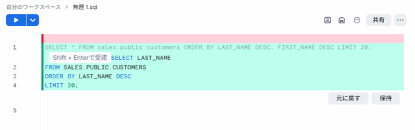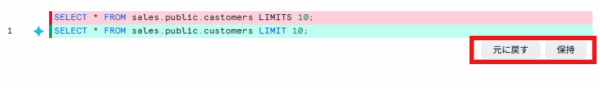 しかもなんと「保持」をクリックすると、正しいSQL文に書き換えてくれます。
