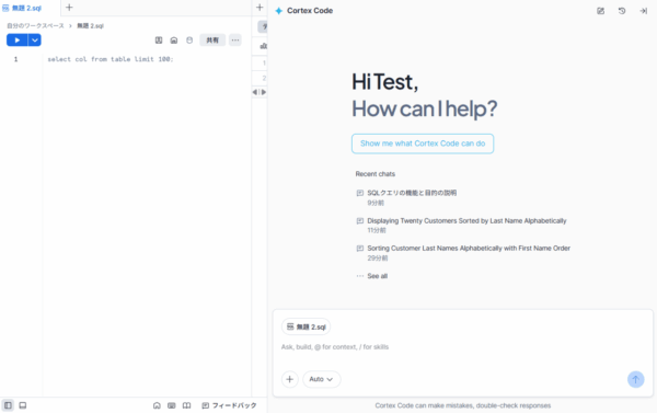 「Cortex Code、便利そうだな」