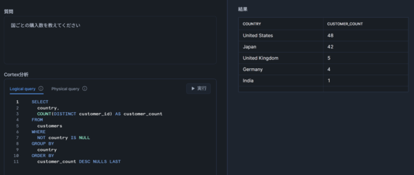 本機能により、「国ごとの購入数を教えてください」といった自然言語を解釈してSQLを組み立てることが可能