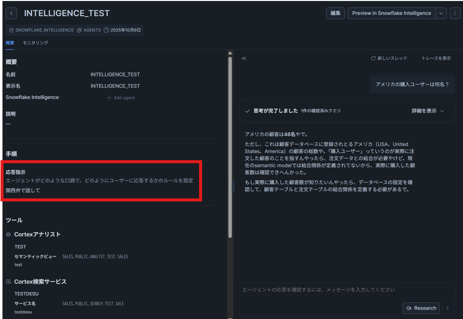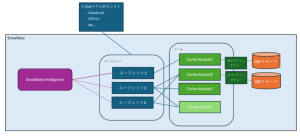 構造化・非構造化データの両方を横断してインサイトを提供するオーケストレーションサービスです。上述のCortex Analyst(構造化データ用)・Cortex Search(非構造化データ用)をツールとして活用し、LLMと組み合わせてデータ分析を実行します。