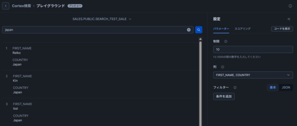 本機能により、SQLを使わず日本のユーザーの検索が可能
