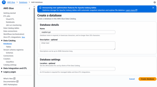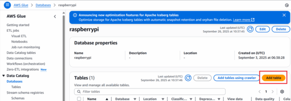 以下コードを入力します。各S3パス、Glue Data Catalog に登録するデータベース名とテーブル名は適宜変更してください。
