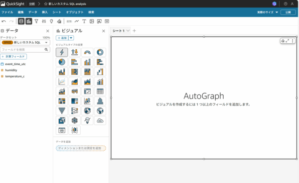 そのまま以下の画面に遷移しますので、グラフを作成していきます。