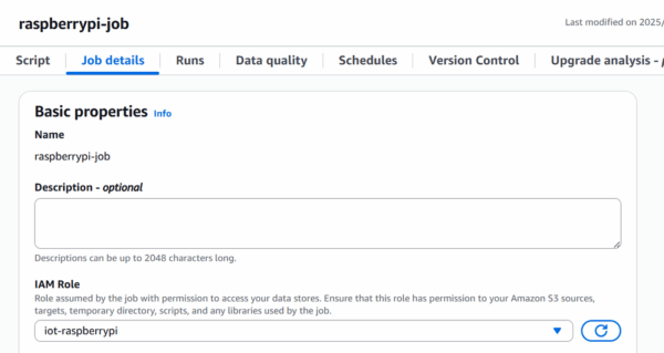 - IAM Role:S3バケットへの読み書き権限とAWSGlueServiceRoleが付与されたIAM Roleを作成し、アタッチします。