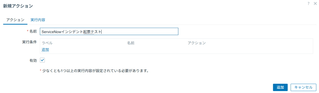 ・[有効]にチェックをいれて、[追加]をクリック。