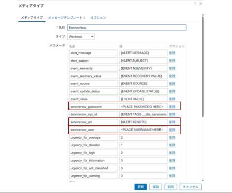 ※Zabbix7.0には、ServiceNowのメディアタイプが標準で用意されているため、本検証ではそちらを利用します。