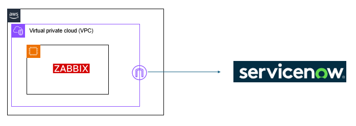 • 通信経路: Zabbixからのアウトバウンド通信は、NAT Gatewayを経由してServiceNowへ送信