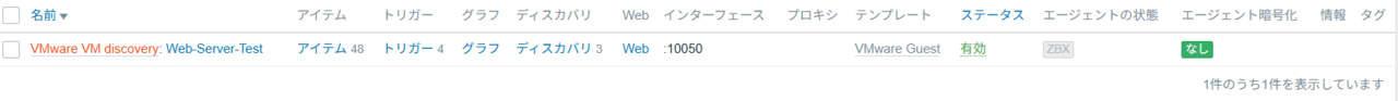 ホストを追加すると、Zabbixが設定した間隔(デフォルトは1時間)でESXiと通信し、仮想マシンやデータストアの情報を自動的に取得(ディスカバリ)し始めます。